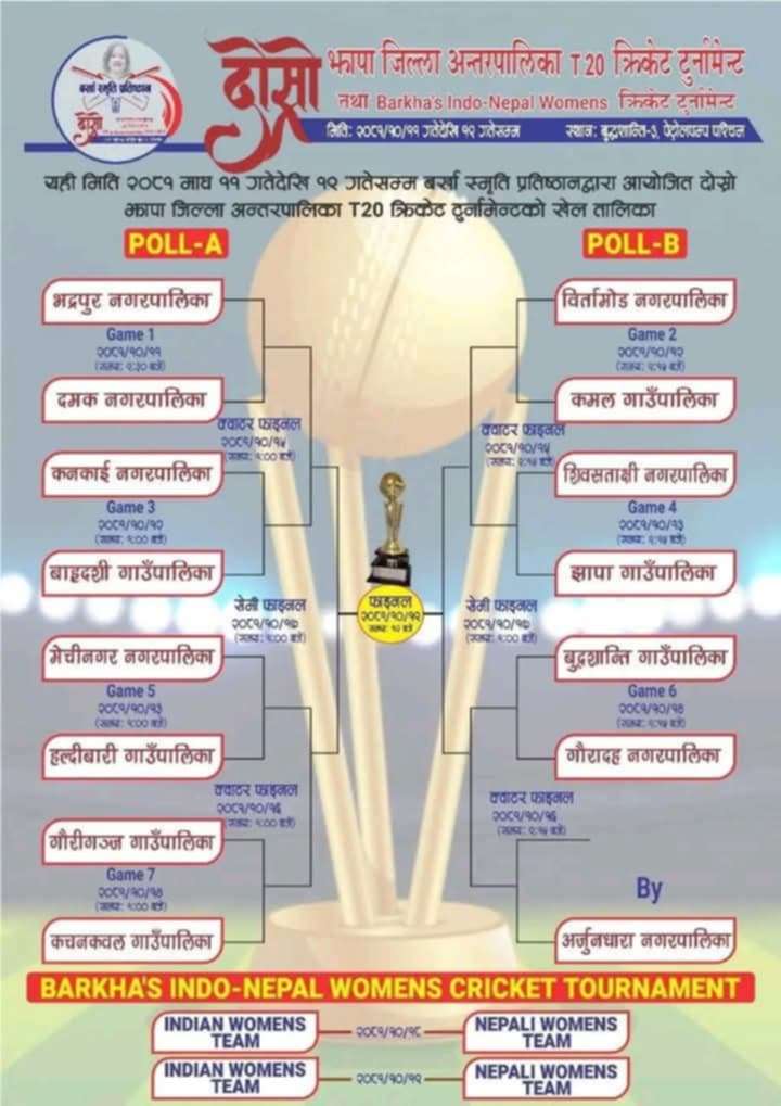 झापा जिल्ला अन्तरपालिका टि 20 क्रीकेट आजबाट : उद्घाटन खेलमा भद्रपुर र दमक भिड्दै ।