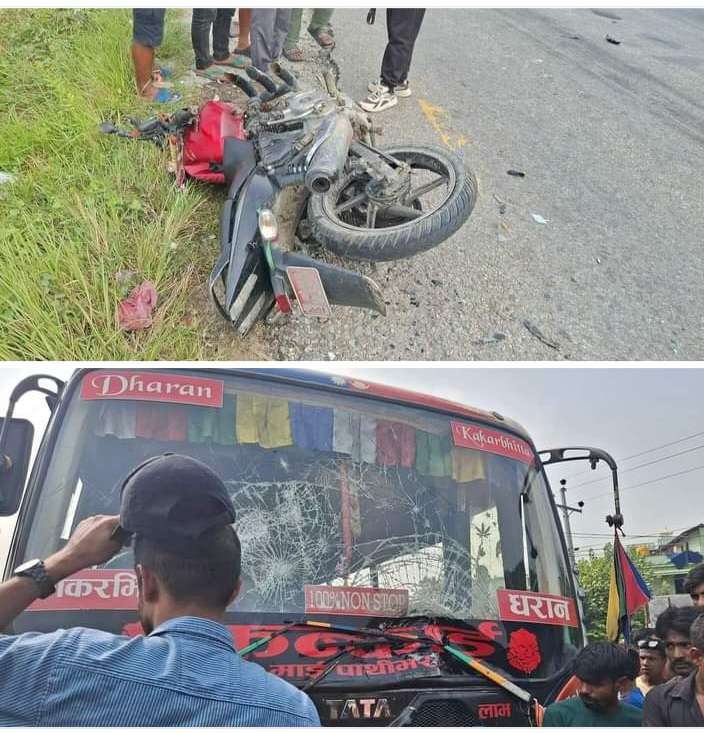बसको ठक्करबाट मोटरसाइकल चालकको मृत्यु, आक्रोशित भीडद्वारा बसमा तोडफोड तथा आग्जनी