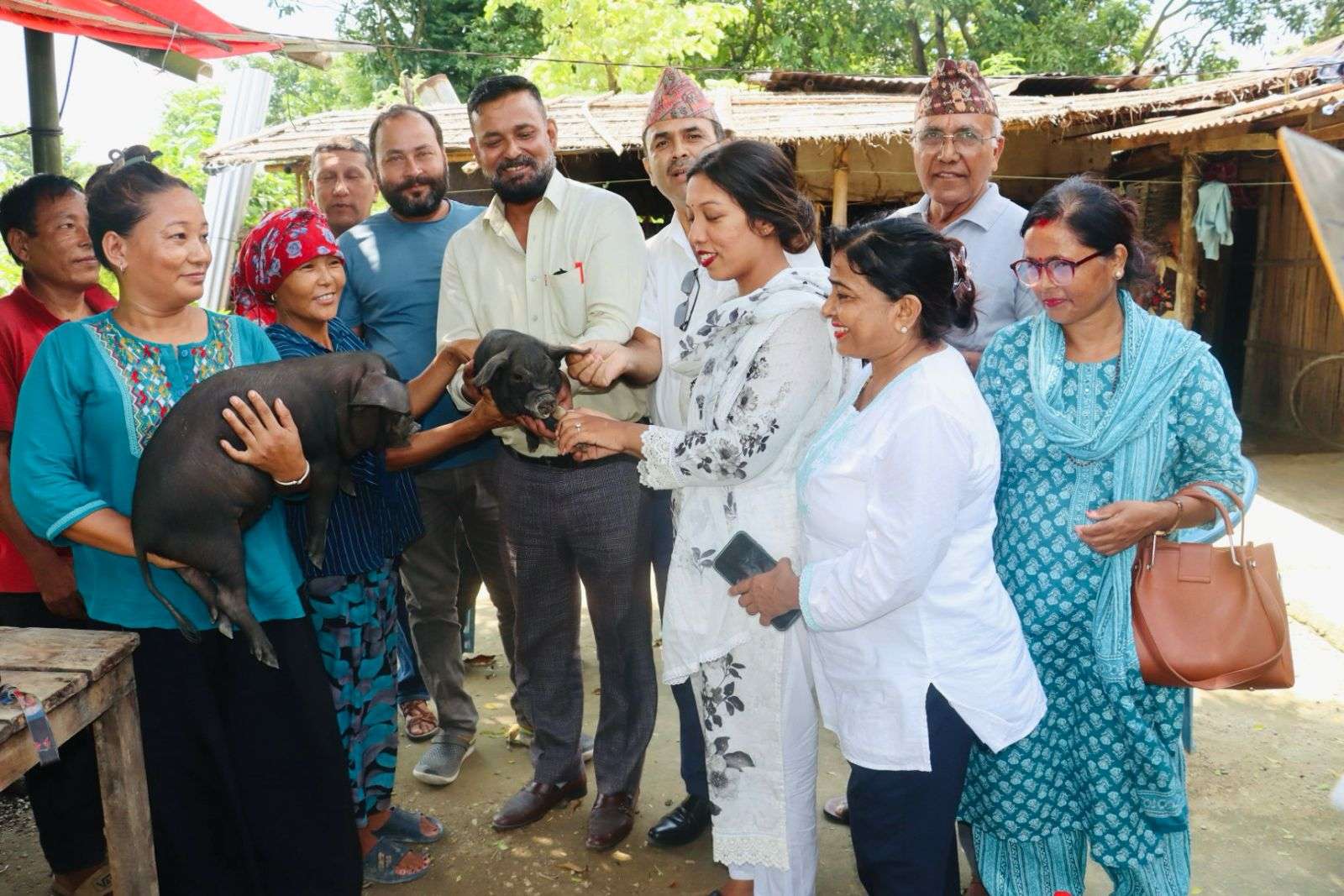 बिर्तामोड नगरपालिकाद्वारा पूर्णिमा कृषि समूहलाई बंगरका पाठा वितरण