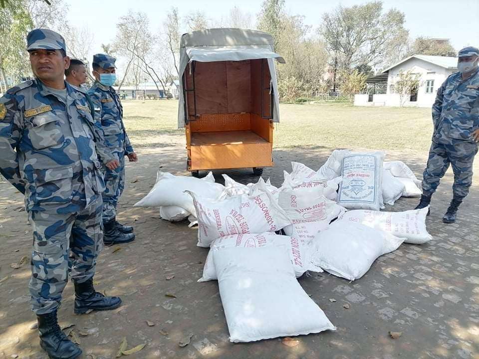 भन्सार छलेर नेपाल भित्राइएको १० लाख मुल्य बराबरको कपडा बरामद