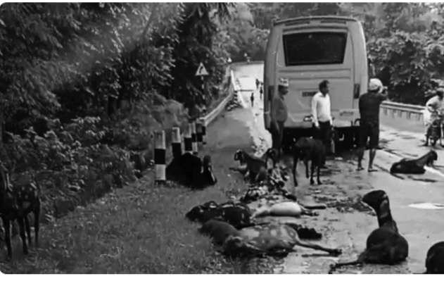 स्कूल बसको ठक्कर बाट एक युवक सहित १८ बाख्रा मरे